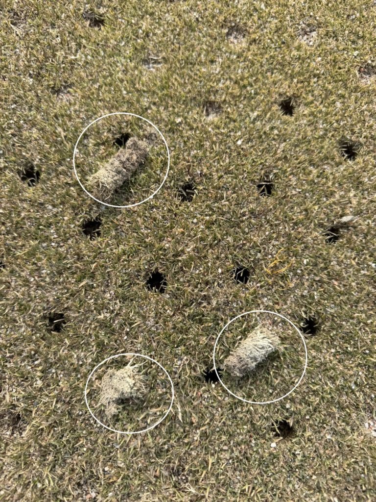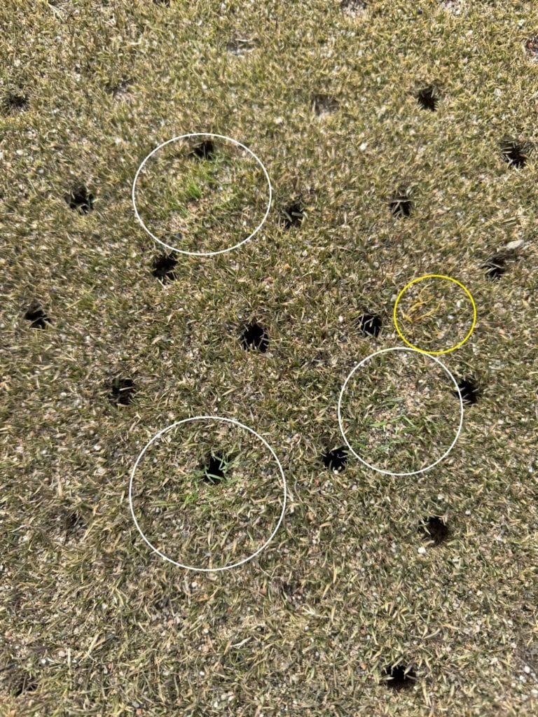 Those pockets of ice over the winter have resulted in pockets of ice damage around the course. We know from sampling some of turf in late Feburary. Here are some of those samples.